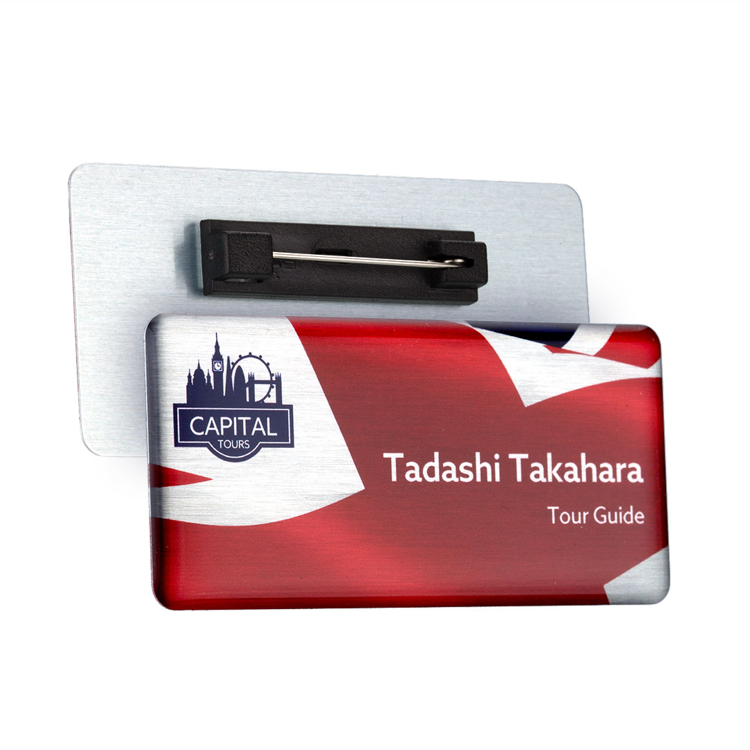 But quality doesn\'t end with materials. With seven luxurious metal finishes to choose from and superb full-colour digital printing, we ensure your brand colours, logos, and fonts, are replicated with unmatched accuracy. Add that extra touch of inclusivity with pronouns, language flags, or ID photographs - all beautifully protected under a clear resin dome for long-lasting clarity and durability.