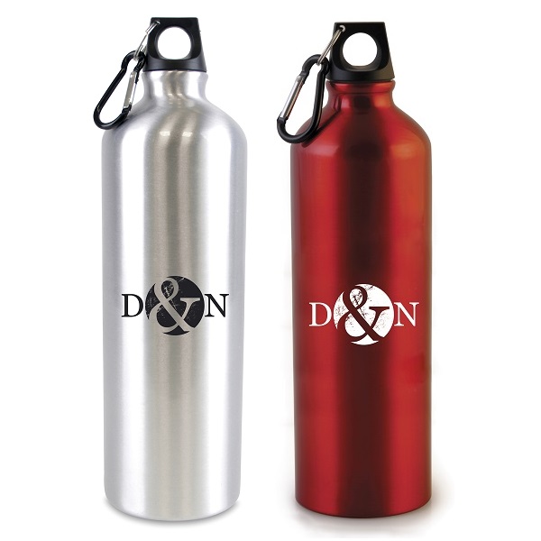 1 litre single walled, glossy aluminium sports bottle with a black PP plastic screw cap and black carabiner clip. BPA & PVC free.