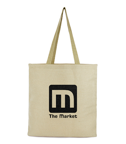 7oz natural juco shopper with long flat cotton webbing handles. Made from 67% jute and 33% cotton, this