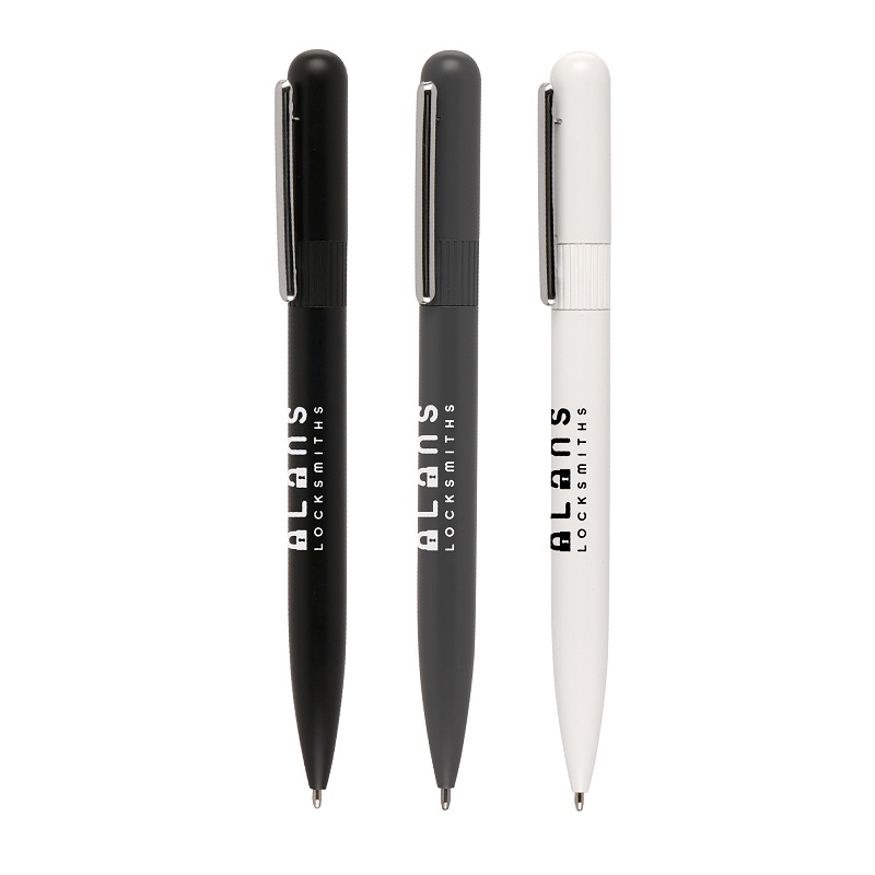 Recycled brass twist action ball pen with attractive matt finish to the barrel, complemented by a steel chrome clip. Sleek and stylish whilst offering a range of colours to match with your branding.